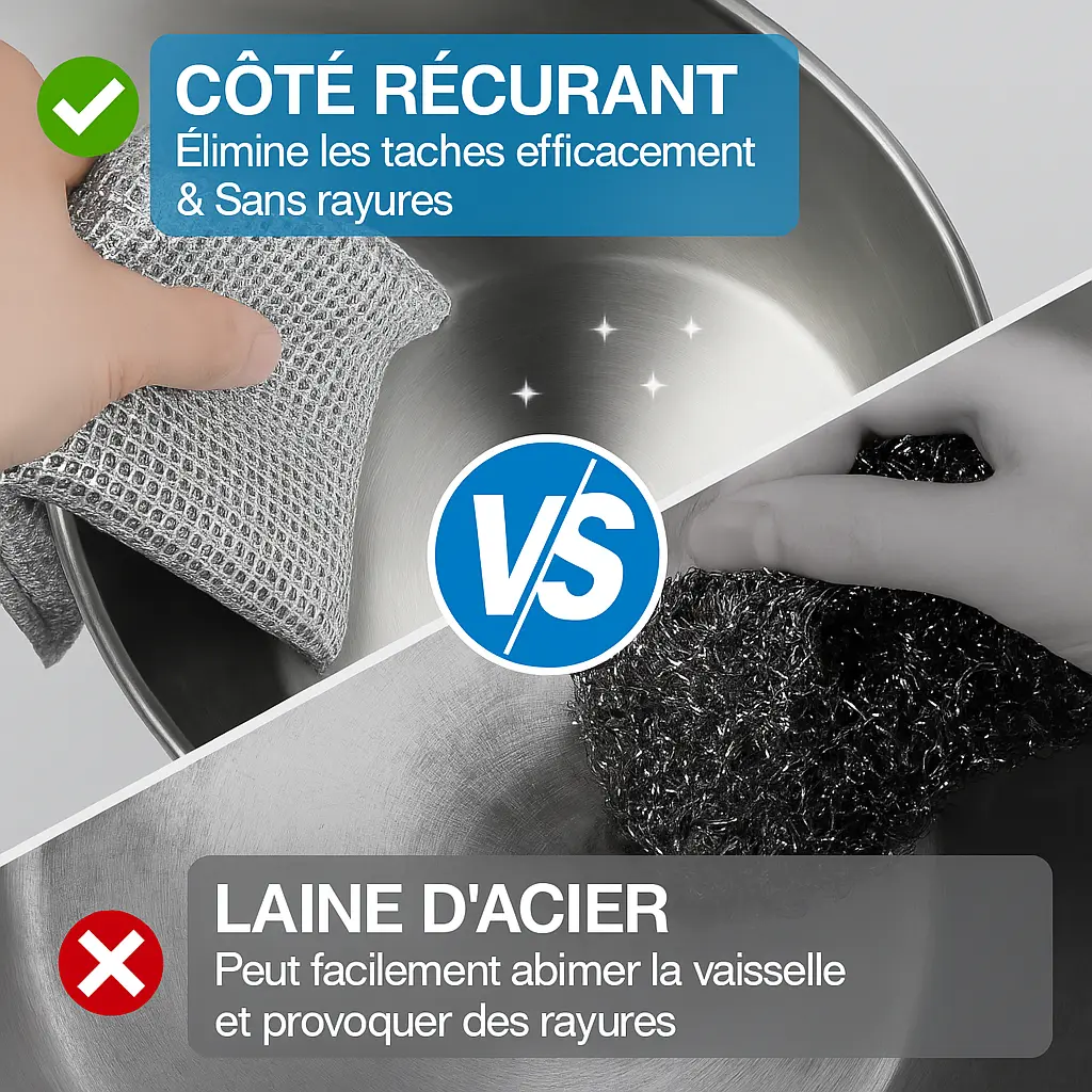Fatigué des éponges qui s'usent vite et laissent des rayures sur vos assiettes, cocottes ou plaques de cuisson ?